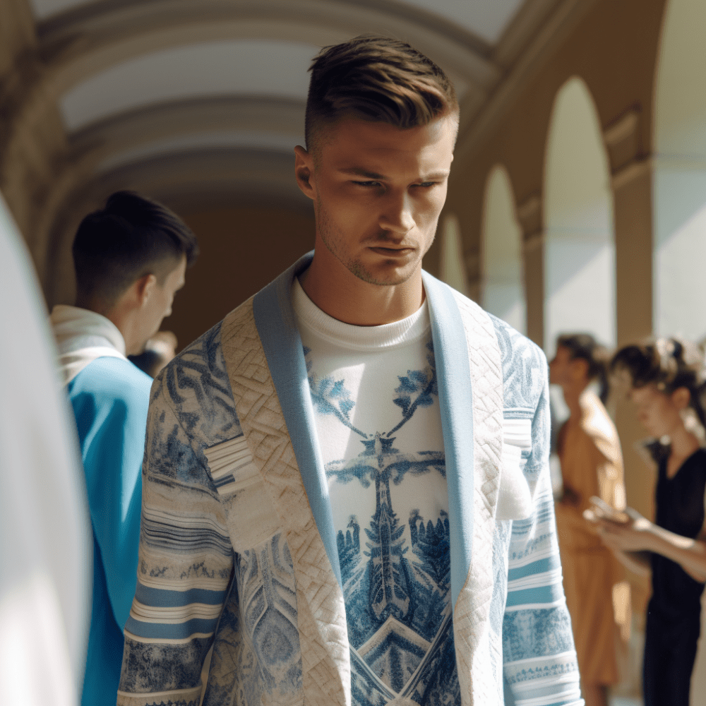 Il Giardino di Boboli diventa il set dell’imponente sfilata Arno P/E 2024. Migliaia di persone attendono e poi invadono il parco in tutta la sua estensione. Mentre il Pitti Immagine Uomo deve ancora cominciare, la prima sfilata di moda virtuale generata con intelligenza artificiale sta già avvenendo. Le persone si ammassano lungo i bordi delle aiuole, prendono posto dove possono in attesa che lo show abbia inizio.