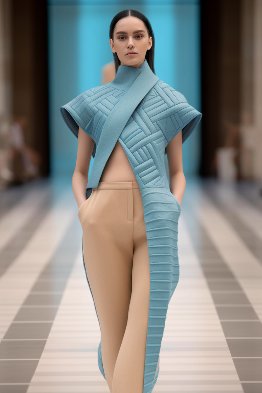 The fabrics chosen for the creation of the garments are worked and structured on layers, able to adapt perfectly to the body and allow freedom of movement. The workmanship has been treated in detail, with particular attention to the quality of the materials.