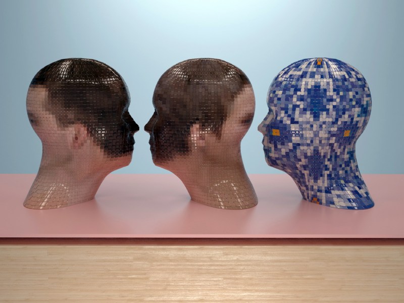 PORTRAIT 360° WatchMe3 & Maiolica, Gianluca Traina, 2016, 120 x 40 x 40 cm, Paper and PVC