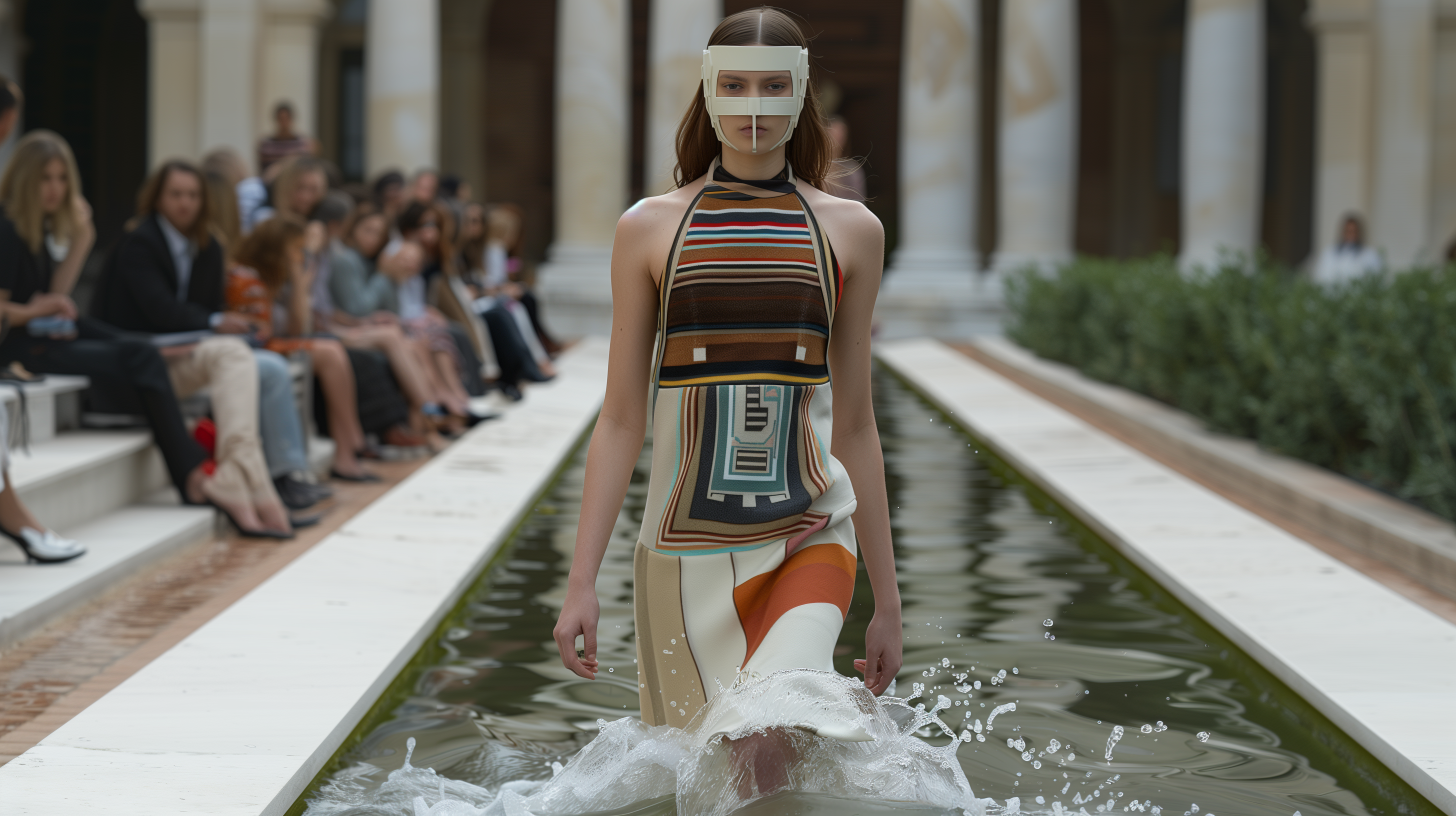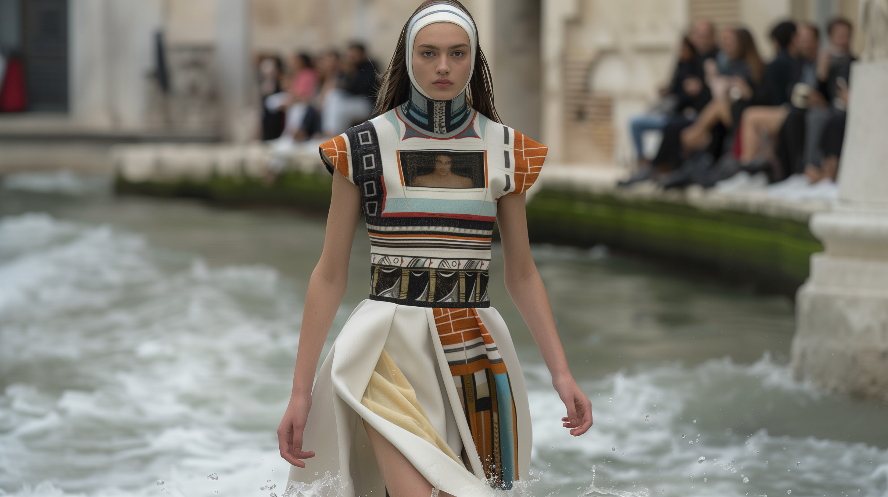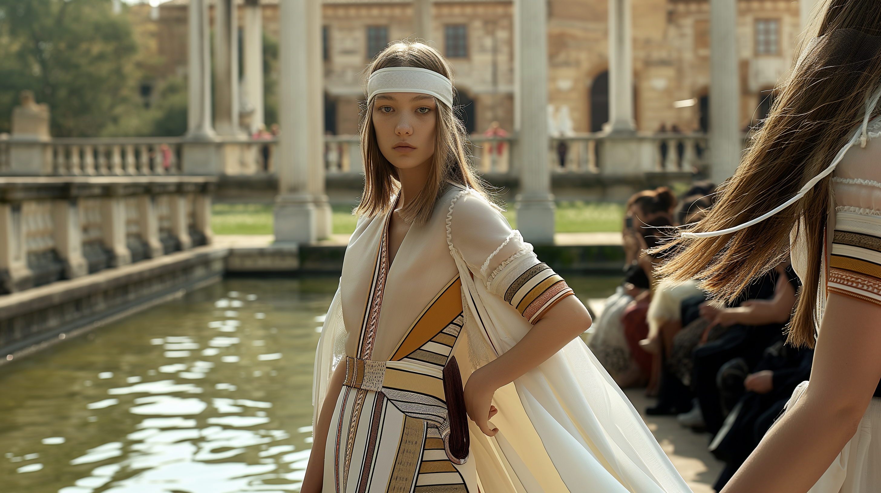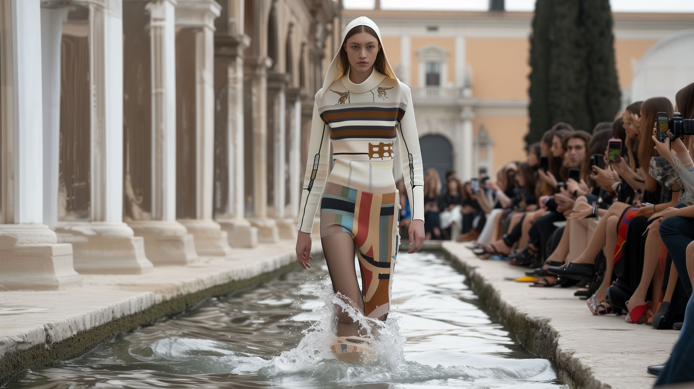 Questa sfilata si svolge nelle acque del Tevere, dove le modelle camminano nell’acqua, quasi come ninfe moderne. Le loro silhouette, riflesse nel Tevere, raccontano una storia di connessione intrinseca con l’ambiente, sottolineando l’importanza di preservare e celebrare le nostre risorse naturali. La collezione TEVERE è più di una moda; è una visione, una dichiarazione d’amore per la natura e la storia, e un promemoria del loro impatto perpetuo sulla nostra vita.